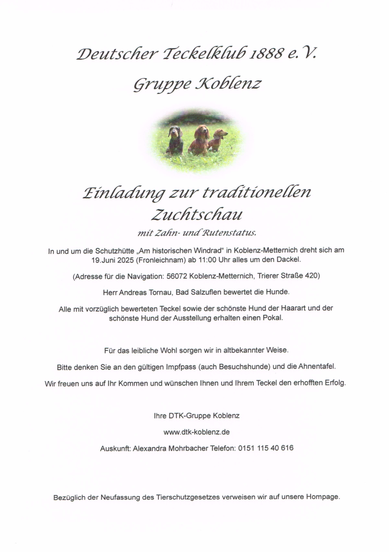 Gerne möchten wir uns Ihnen vorstellen und würden uns über Ihr Interesse an unserem Verein freuen. Hier dreht sich alles um den Dackel, hier geht es um Haltung, Erziehung, Gesundheit, Zucht, Ausstellung, jagdliche Eignung und vieles mehr.